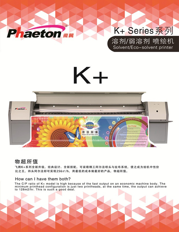 飛騰K+系列全新升級,經(jīng)典設計、全新搭配,可裝載精工阿爾法噴頭與扯布系統(tǒng),使之成為繪機中性價比之王,四頭阿爾法即可實現(xiàn)256㎡/h,用最低的成本做最好的產(chǎn)品,物超所值。